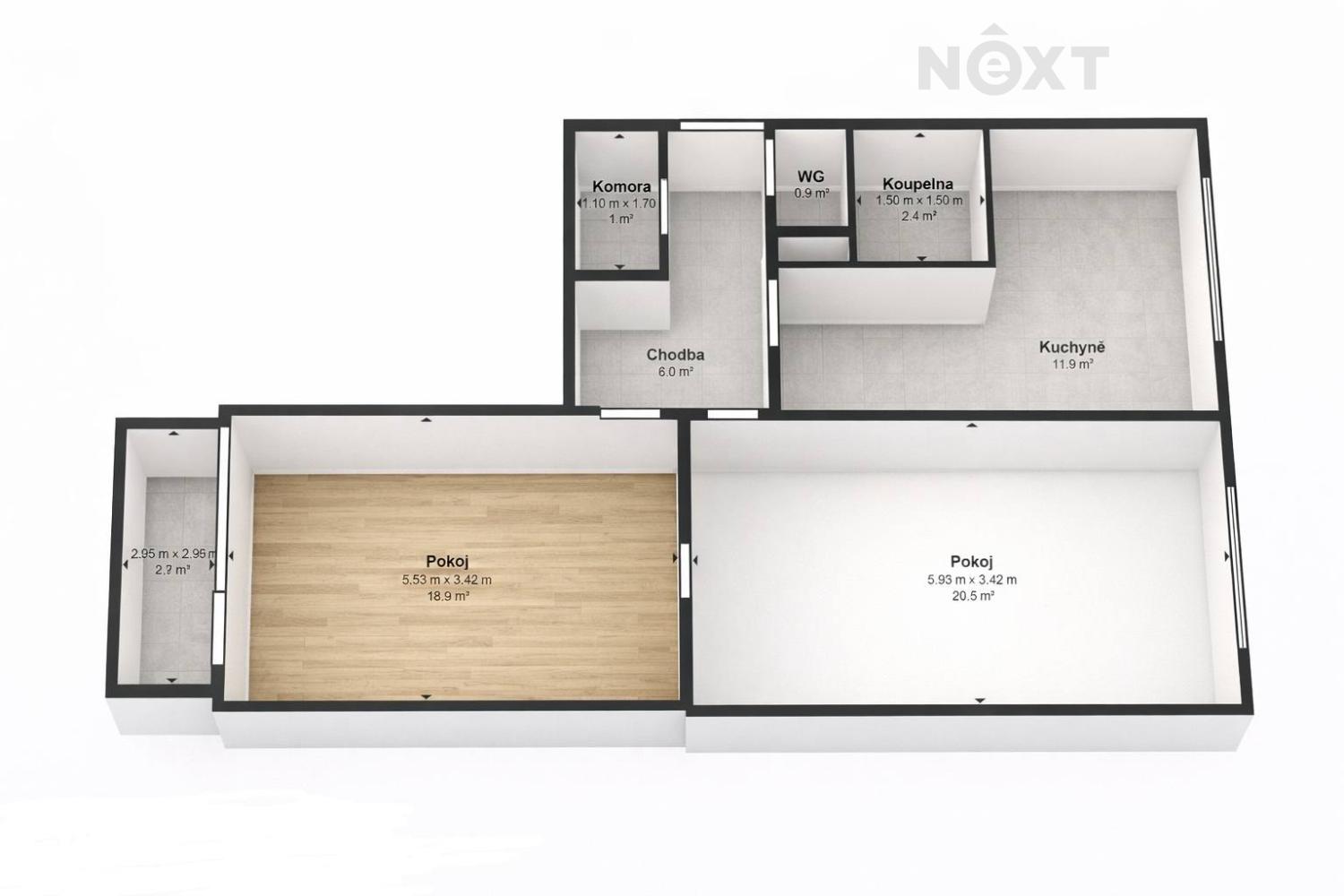 • Dispozice 2+1 – ideální jak pro vlastní bydlení, tak jako investice
