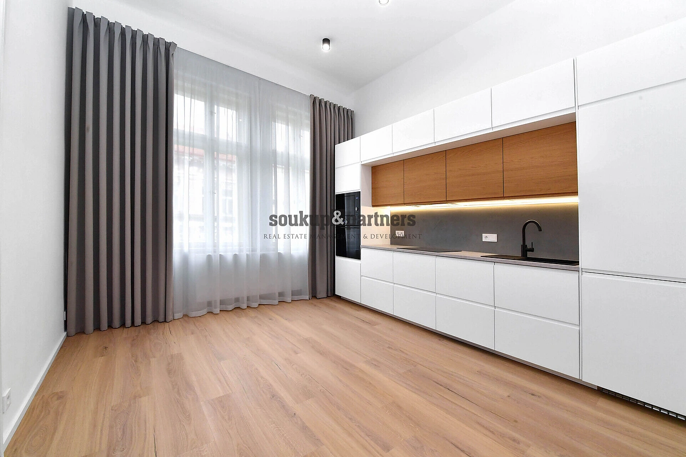 Byt 2+kk/ Šatna - 43 m2, který se nachází ve 4.NP cihlového domu jen 2 min. chůzí od Vltavy a 5 min chůzí od Anděla. Byt je po kompletní, velmi náročné a nákladné rekonstrukci na základě návrhu bytového architekta - nová kuchyňská linka vč. značkových vestavěných spotřebičů, nové vinylové podlahy v dekoru světlého francouzského dubu, interiérové dveře, prostorné patro na spaní, promyšlené úložné prostory, vestavěná šatna pod patrem, nová dřevěná dvojitá okna, koupelna se sprchovým koutem, značkovými bateriemi a wc s bidetovou sprškou, úložný prostor na pračku a sušičku a bytem prochází designová betonová stěrka a led podsvícení. Vytápění a teplou vodu zajišťuje nový plynový kondenzační kotel s digitálním termostatem a možností ovládání přes aplikaci a mezi dalším vybavením bytu je domácí videotelefon. Dům se průběžně revitalizuje - společné prostory, kamerový systém, vstupy na čip, výtah a další. Vzhledem k vynikající poloze bytu je nabídka vhodná jak pro vlastní potřeby, tak na investici v rámci širšího centra Prahy s polohou u Vltavy a u Metra B, zast. Anděl. OV - možnost financovat hypotečním úvěrem, který rádi zařídíme. Pro více informací volejte manažera nabídky.