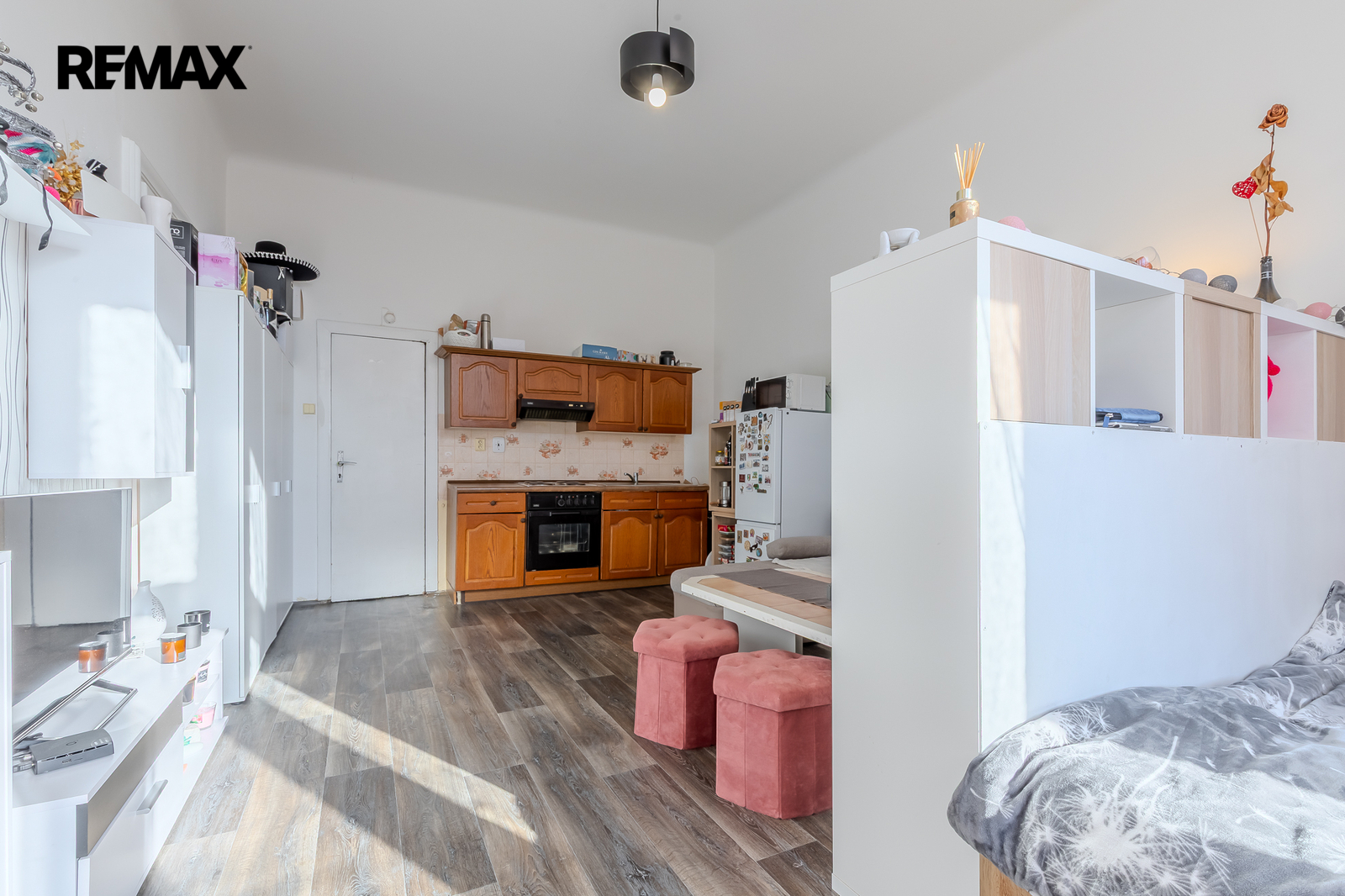 Výhodou je dispozice bytu, pouze 3 byty na patře a celkem 17 bytů v domě. V domě je volná půda a k bytu náleží výnos z pronájmu nebytových prostor v domě.