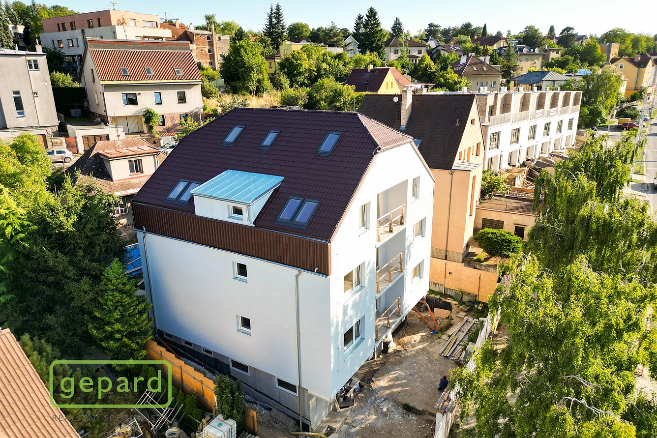 Realitní společnost Gepard nabízí mezonetový byt 6+kk o velikosti 160m2, který je součástí projektu Viladům Plzeňská. K bytu náleží sklep v garáži o velikosti 2,8m2, dvě garážová stání a jedno venkovní stání, komora na patře.