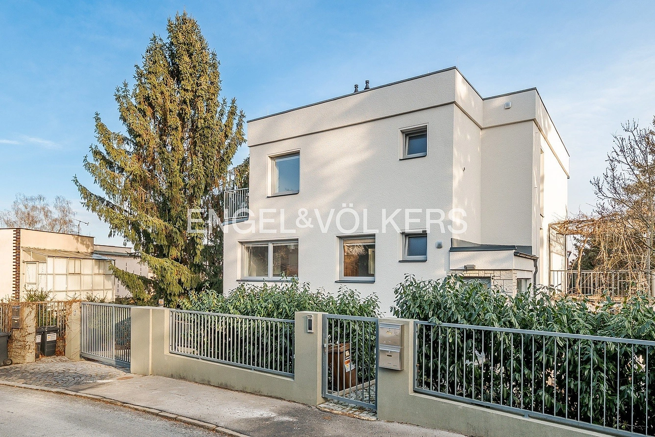 Výrazným prvkem domu je přirozené propojení interiéru se zahradou a několik teras v různých podlažích, které rozšiřují obytný prostor směrem ven. Nejvyšší podlaží navíc nabízí střešní terasu s výhledy na Prahu, které dávají tomuto místu zcela jinou atmosféru. Zahrada poskytuje dostatek soukromí i prostoru pro každodenní život, odpočinek i setkávání.