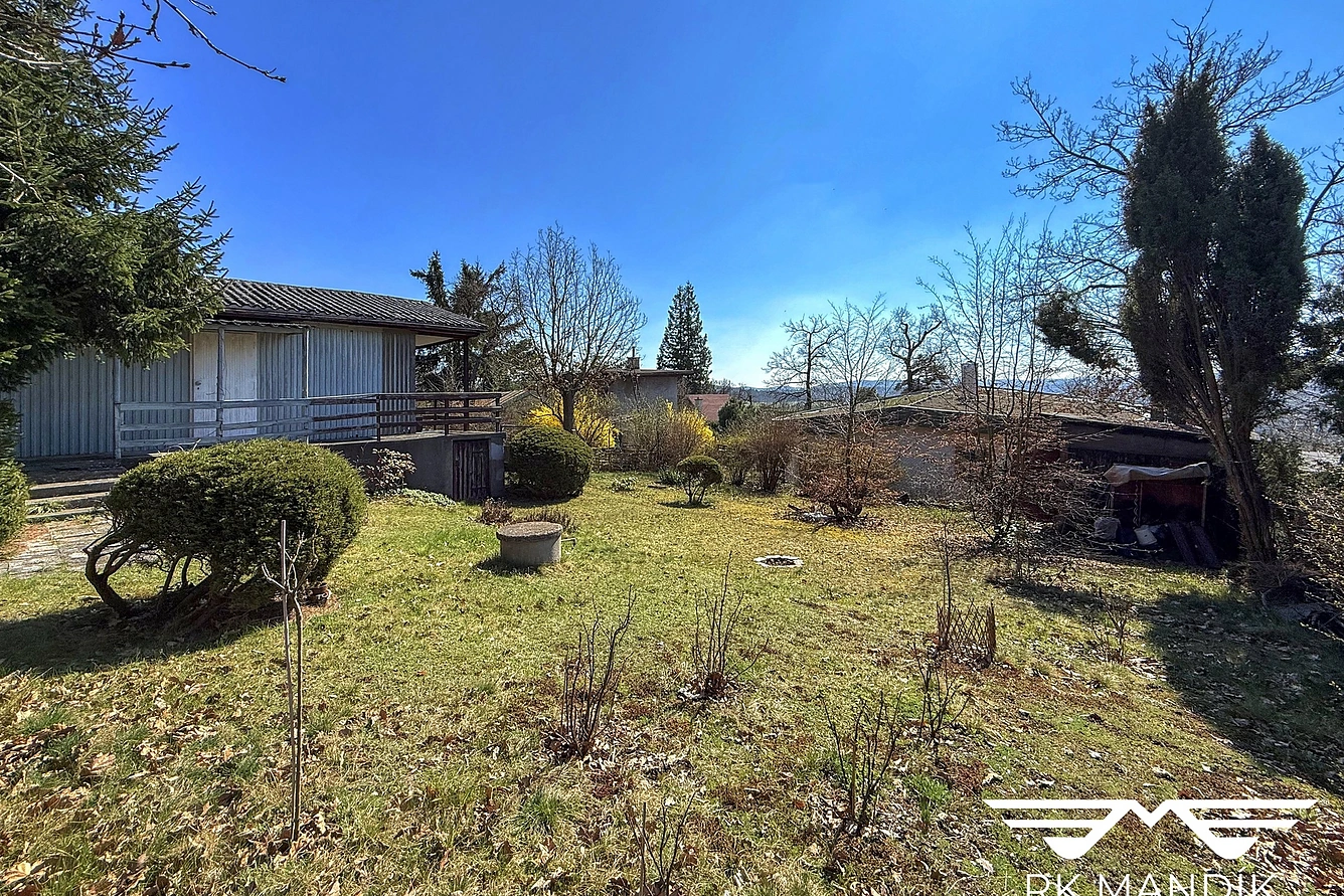 Chata na pozemku je zasazená do jižního svahu, ideální místo k relaxaci nebo na pozdější bydlení.
