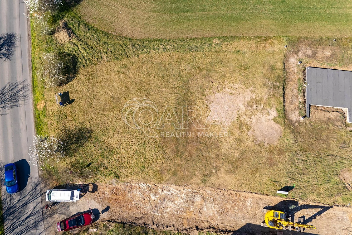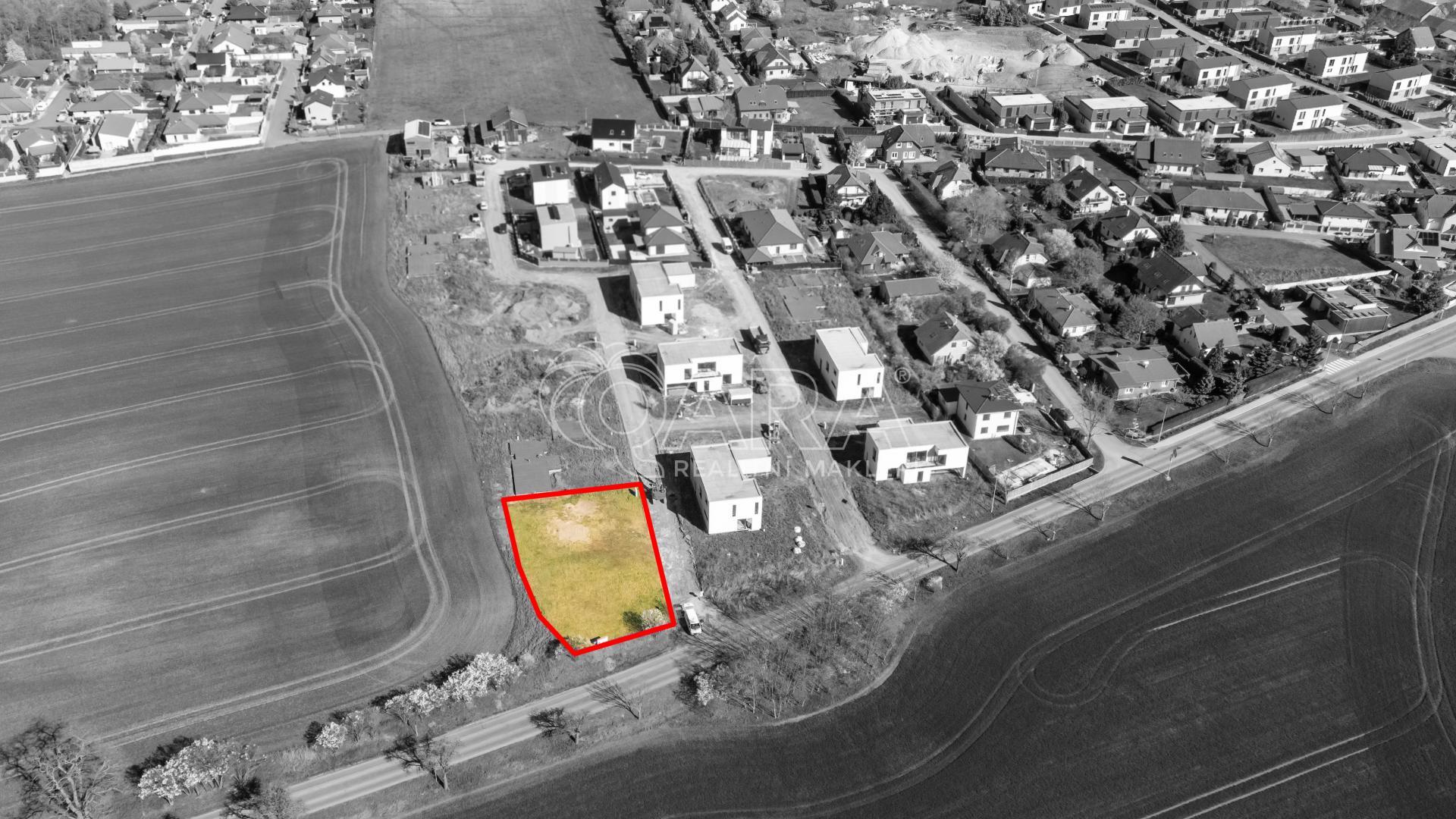 Pozemek se nachází na začátku ulice, je mírně svažitý a nabízí směrem na západ příjemný výhled do okolí.