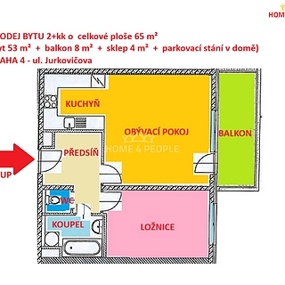 Zprostředkujeme Vám výhradní prodej pěkného bytu o dispozici 2+kk o celkové ploše 65m2 (byt 53m2 + balkon 8m2 + sklepní kóje 4m2 + parkovací stání v domě). Byt se nachází ve druhém nadzemním podlaží pětipodlažního bytového domu (kolaudace 2012) s novým výtahem v pražských Hájích, v ulici Jurkovičova. Byt je v osobním vlastnictví a disponuje obývacím poko