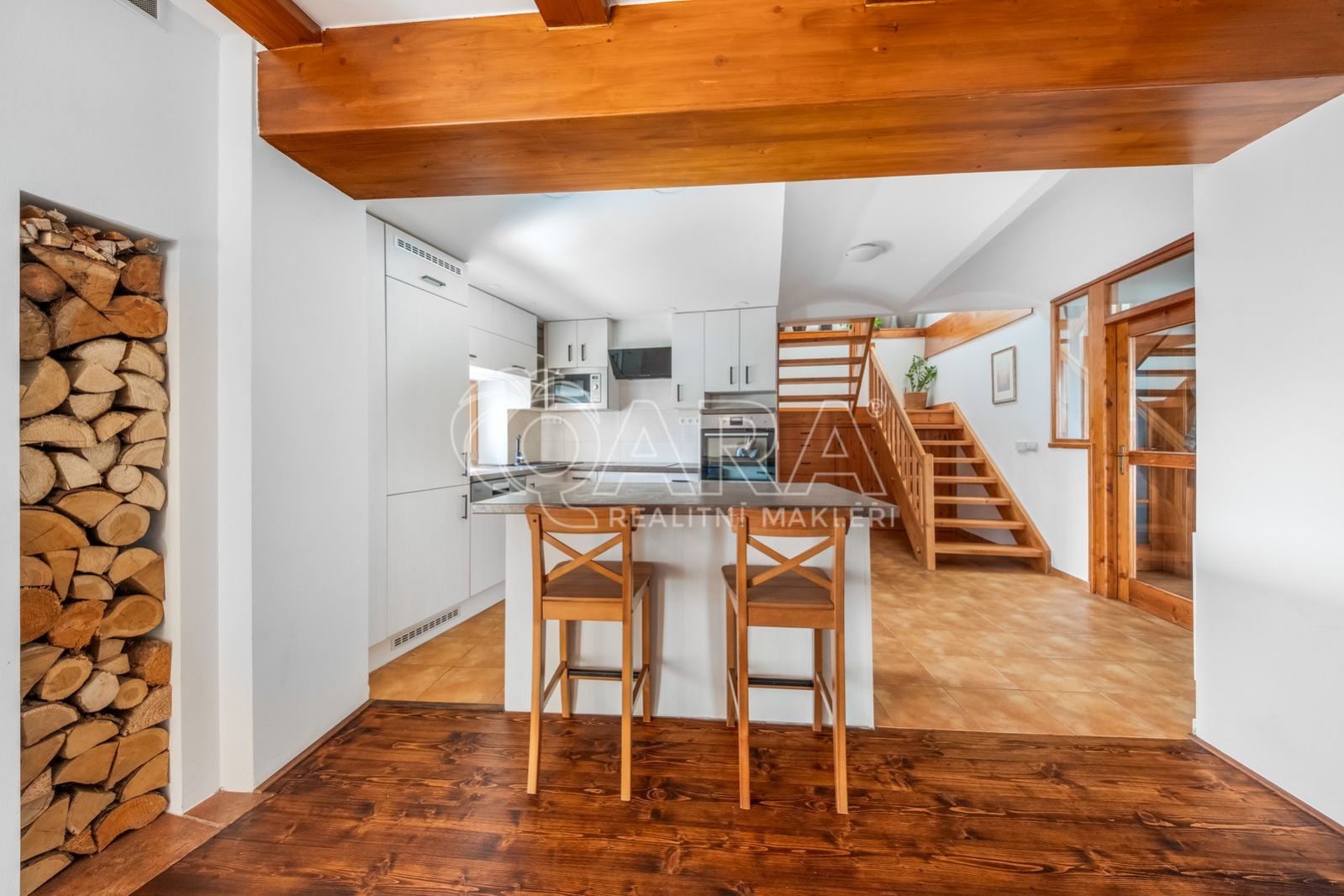 Vznikl při kompletní rekonstrukci trojdomu v r. 2008, přičemž jeho majitel ho průběžně dále zdokonaloval a vylepšoval (podlahy, krb, zvukové izolace, nová kuchyňská linka z r. 2023, nová střešní okna Velux z r. 2024).