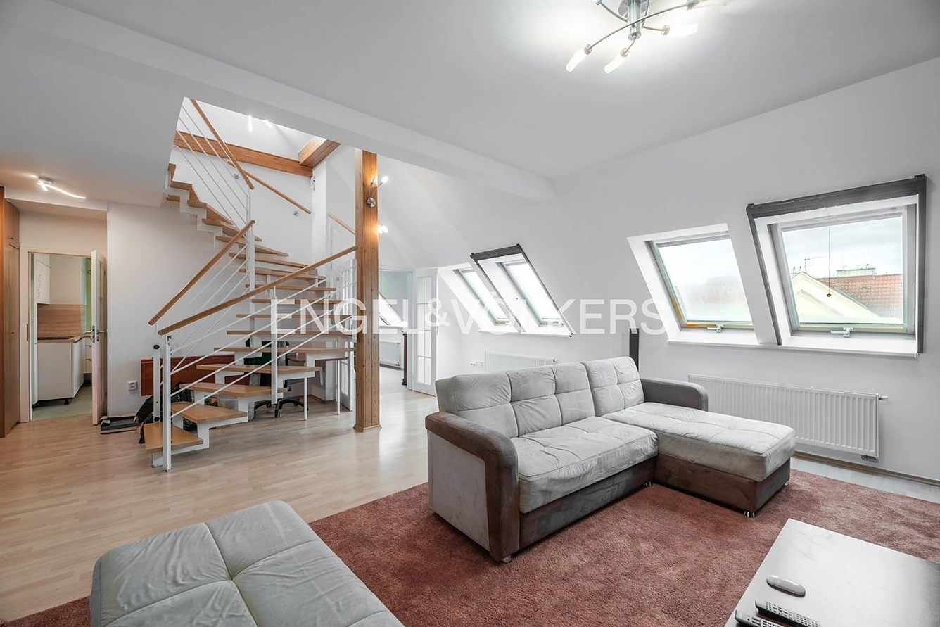 K okamžitému pronájmu Vám nabízíme prostorný plně zařízený mezonetový byt situovaný na Puškinově náměstí v oblíbené rezidenční lokalitě Praha - Bubeneč. Byt se nachází v činžovním domě po rekonstrukci s výtahem do patra.